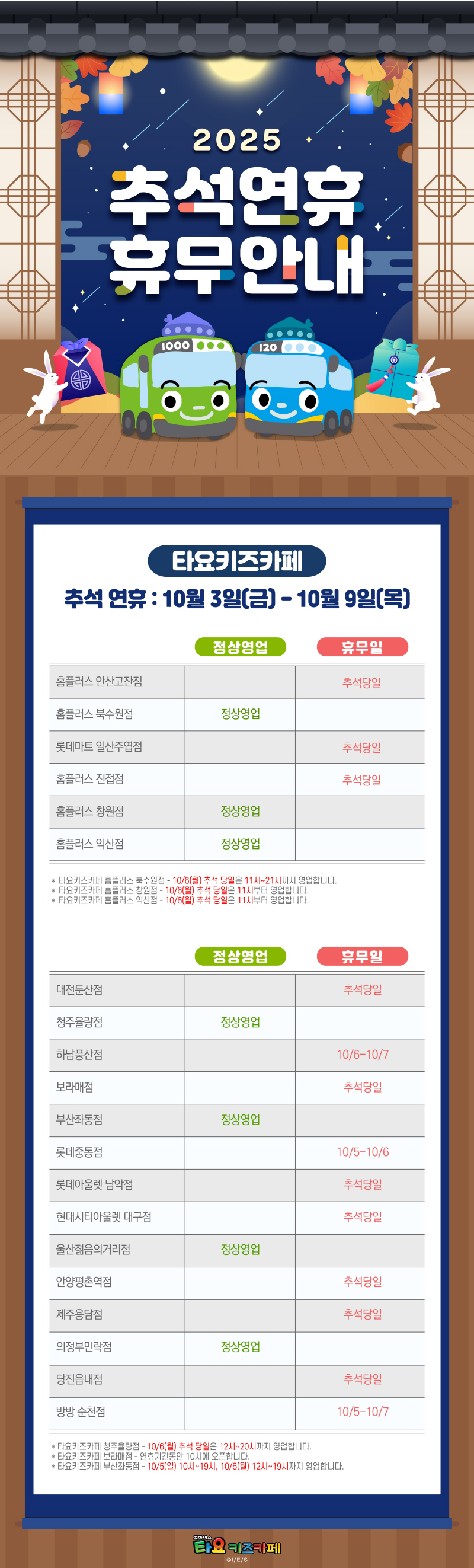 2025 타요키즈카페 추석휴무안내